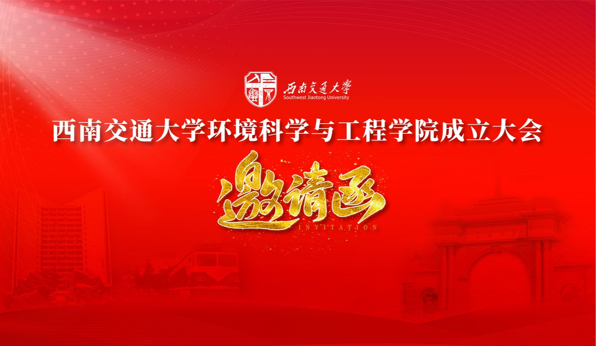 西南交通大学环境科学与工程学院成立大会邀 请 函各位领导、各位交大环境校友、社会各界人士:春潮澎湃启新程,奋进扬帆乘劲风。山水相连连四海,和合天地共荣生。在深入学习贯彻全国两会精神之际,西南交通大学定于2024年3月31日上午9时在犀浦校区举行环境科学与工程学院成立大会。这是西南交通大学深入学习贯彻习近平生态文明思想,全面落实美丽中国建设战略的重大举措,这是交大环境学科发展进程中具有里程碑意义的重要时刻,这是一代代环境人承扬传统、...
