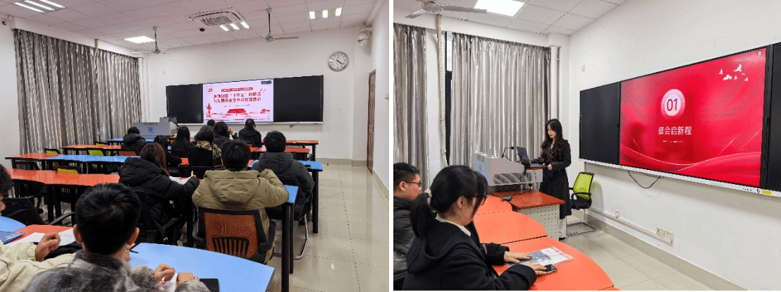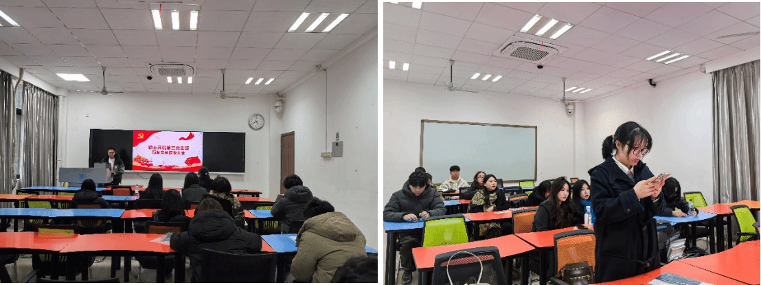 12月11日下午4:30,环境学院硕士第三党支部在X4136教室开展了12月主题党日活动。本次党日活动的主题为“学习宣传贯彻党的二十届四中全会精神,以教育强国建设支撑引领中国式现代化”,主要学习内容为《党的二十届四中全会〈建议〉学习辅导百问》。本次党日活动由党支部书记唐若愚主持,采用线下线上相结合的方式,选出三名同志分享其学习心得。