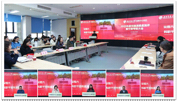 随后,龚正君院长代表学院领导班子作年度工作述职,全面汇报了学院在人才培养、学科建设、科学研究、师资引育及内部治理等方面取得的进展。之后,中层领导干部依次进行个人述职,重点围绕个人履职、分管工作、“一岗双责”落实及廉洁自律等情况进行了汇报。