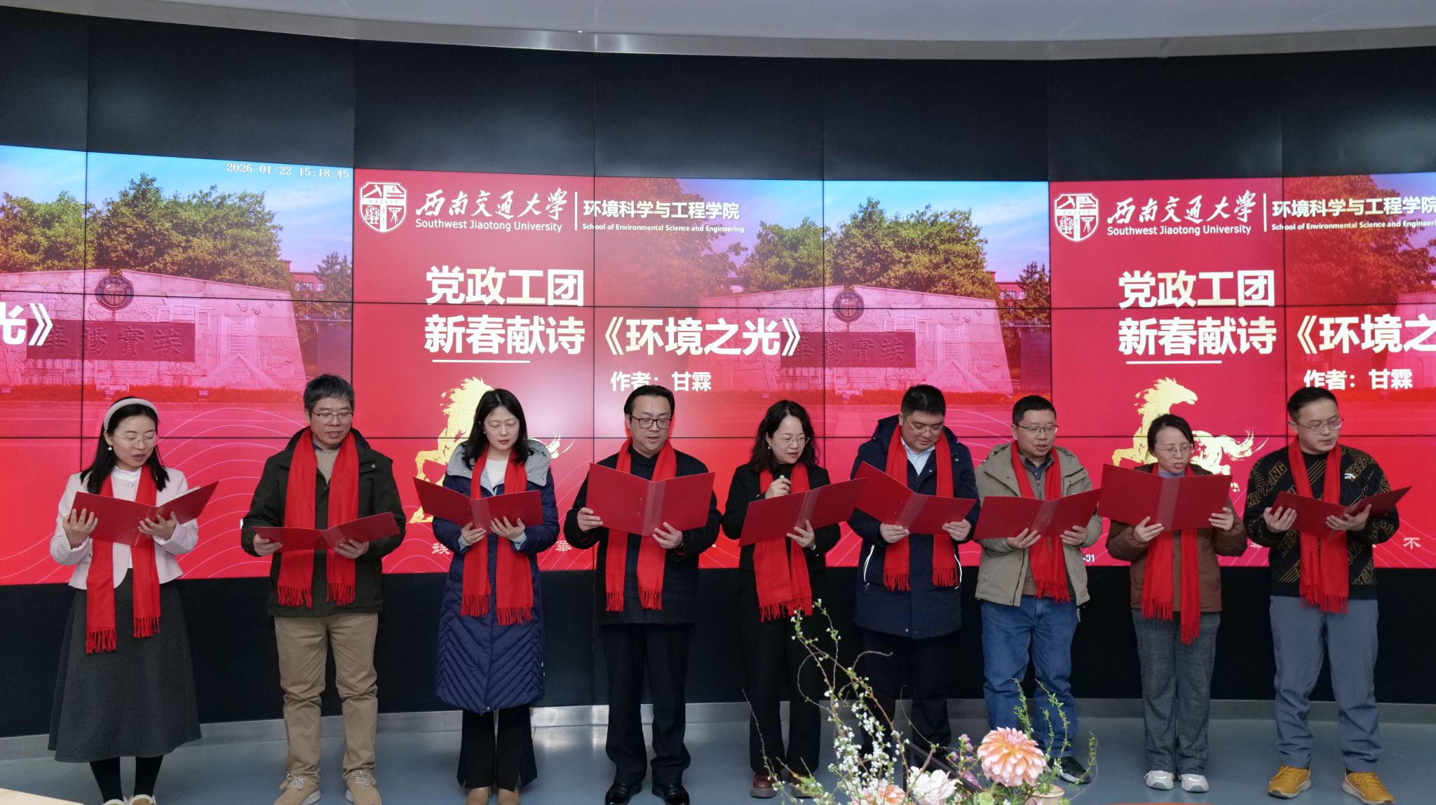 金蛇辞旧岁,骏马迎新春。1月22日下午,西南交通大学环境科学与工程学院与成都西交扬华环保科技有限公司在犀浦校区联合举行“携手共进,马跃新春——2026年新春茶话会”。西南交大原副校长杨立中教授、西交扬华公司代表及环境学院全体教职工齐聚一堂,共话2025年工作成效,共绘2026年发展蓝图,在欢乐祥和的氛围中迎接新春佳节的到来。