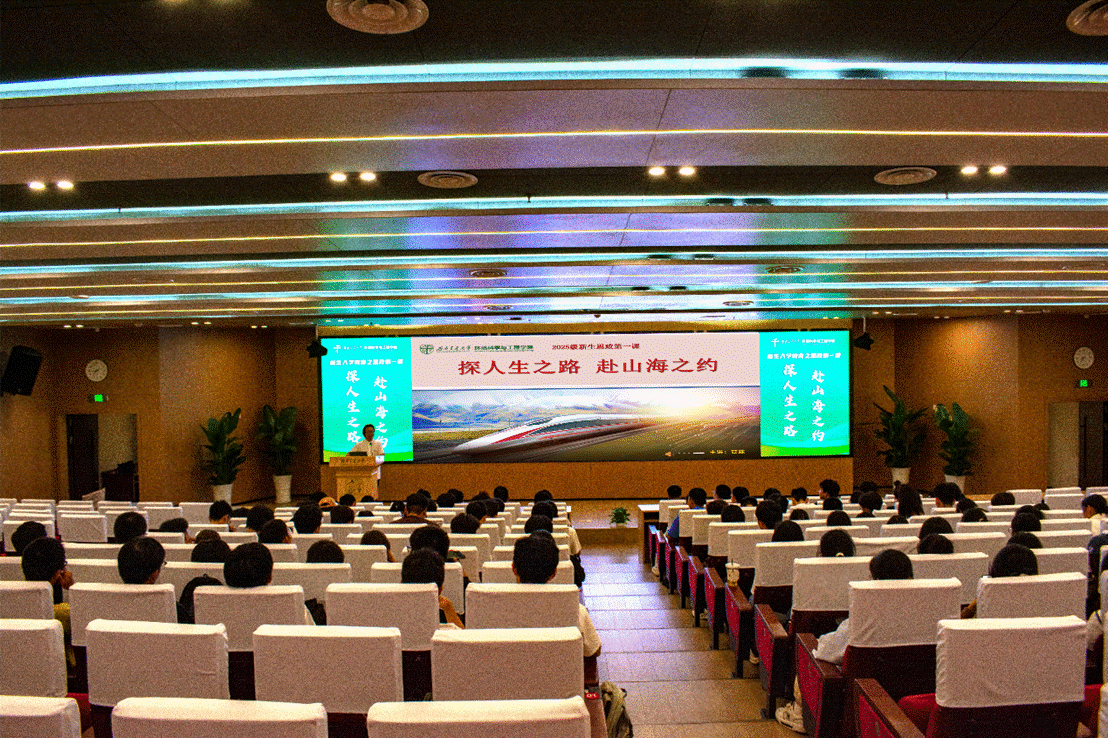 甘霖结合交大的大学精神,校训和办学传统,向新生介绍了西南交通大学百卅办学历史与环境科学与工程学院发展历程。他通过讲述校史中坚守初心、担当使命的故事,介绍学院在环境领域的研究成果与发展足迹,以及学校优秀校友在行业内扎根奋斗、服务国家的经历,阐释“身份即责任”的内涵——作为交大环境学子,应始终关注国家需求,将个人理想融入时代发展和民族复兴伟业进程中。