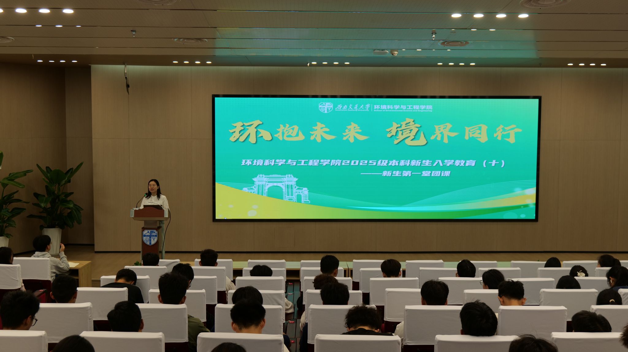 为帮助本科2025级新生快速适应大学学习生活,明确学业目标,合理规划成长路径,10月16日,西南交通大学环境学院于图书馆二号报告厅举办“环抱未来,境界同行”新生第一堂团课。本次团课由环境学院团委书记翟琦主讲,学生辅导员曾祥珂、向祎斐与2025级全体本科新生共同参与。