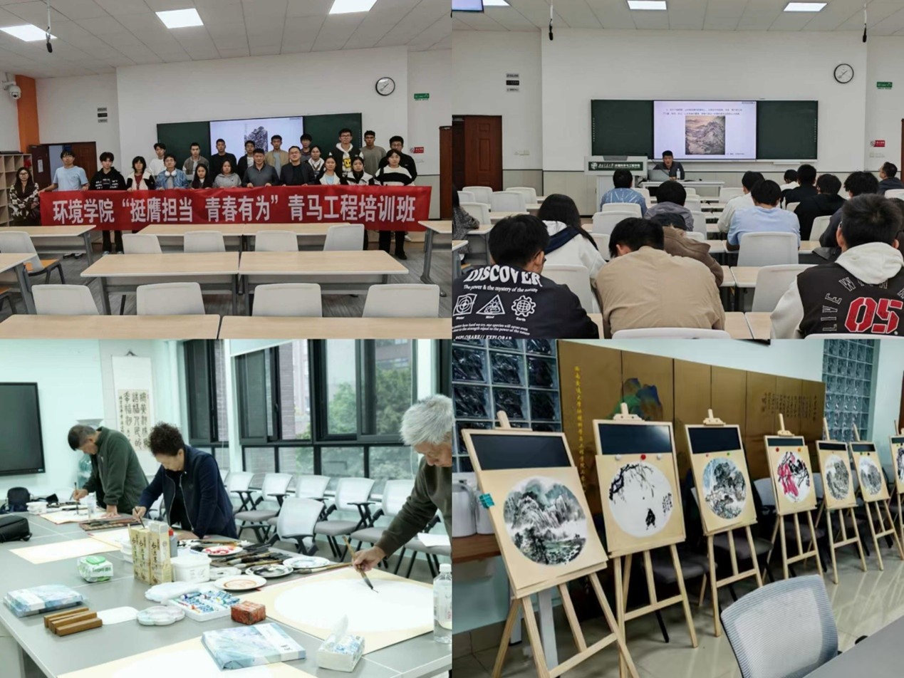 为探索中华优秀传统文化与现代环保理念的深度融合,引导广大师生从中国山水画的意境中感悟自然之美,在校工会、校团委的指导下,环境科学与工程学院工会、团委以及“文润”辅导员工作室于10月30日在犀浦校区开展了“墨染青绿·山水新语——中国山水画艺术赏析”之嘉州画院艺术家走进西南交大活动。嘉州画院常务副院长兼秘书长袁艺先生、四川省美术家协会会员刘辉先生、四川省书法家协会会员张荔女士、环境学院党委书记甘霖以及来自校内的50余名师生共同出席本次活动。活动由环境学院工会主席彭道平主持。
