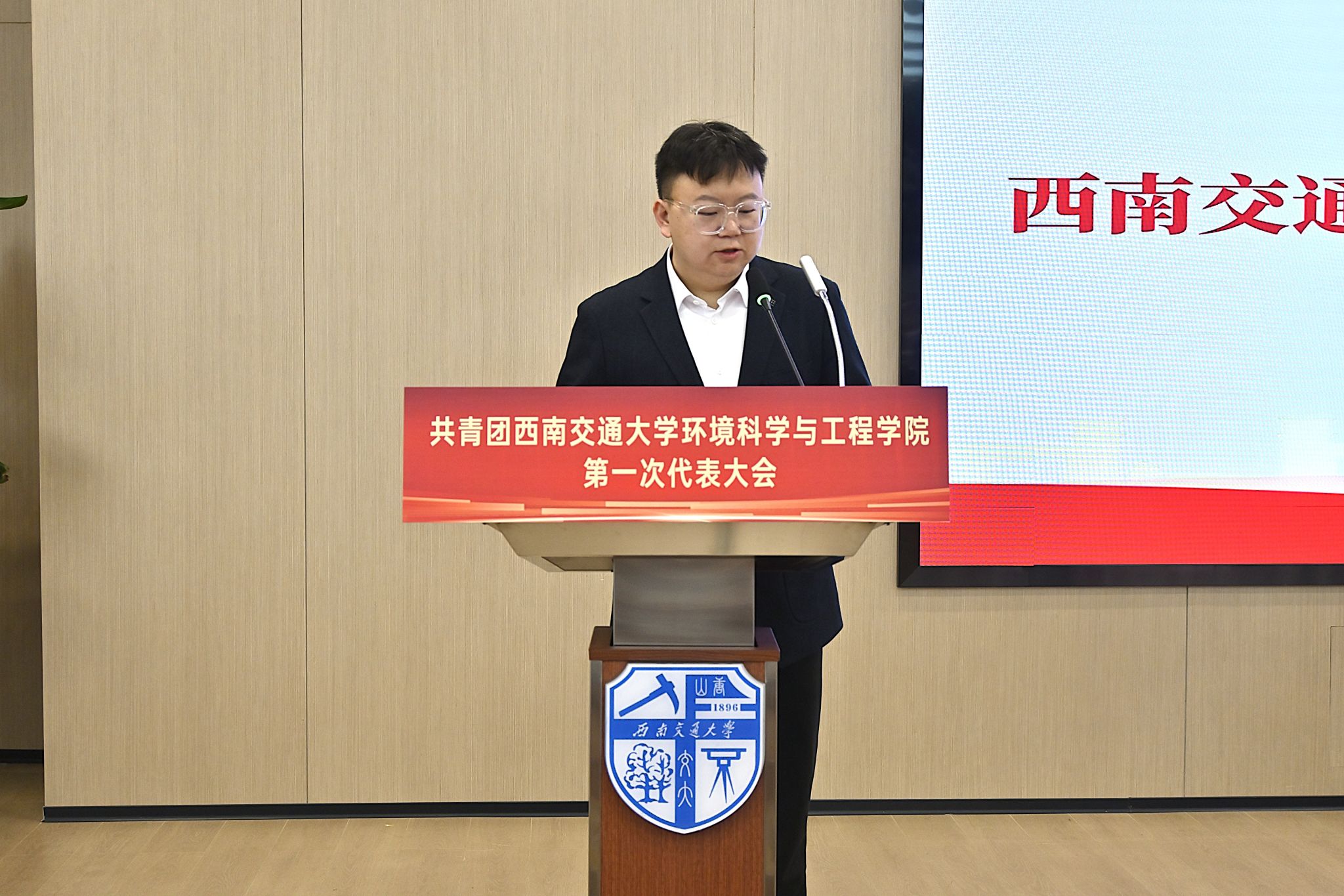 开幕式后,举行大会第一次全体会议,翟琦同志代表共青团西南交通大学环境科学与工程学院委员会作了题为《高举伟大旗帜,凝聚青春力量——为谱写人与自然和谐共生现代化新篇章挺膺担当》的工作报告,回顾了过去几年学院共青团工作取得的成绩,总结了对学院共青团工作的认识和思考,明确了未来五年学院共青团工作的主要任务。