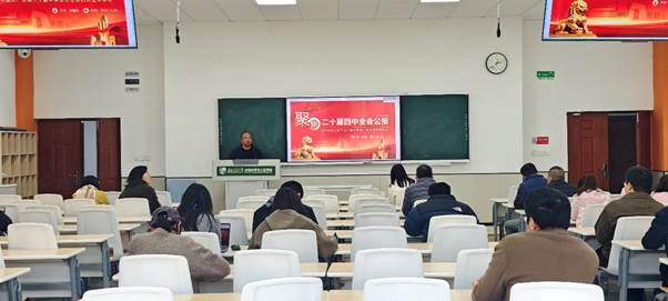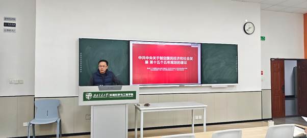 首先,由教工第三党支部书记余嘉希同志作为领学人,带领全体教职工深入学习《中国共产党第二十届中央委员会第四次全体会议公报》核心内容,重点解读了全会关于国家治理体系和治理能力现代化的战略部署。同时,结合《中共中央关于制定国民经济和社会发展第十五个五年规划的建议》,余嘉希同志从生态文明建设、绿色发展转型等角度切入,引导教职工将国家规划与学科发展紧密结合,强化责任担当。