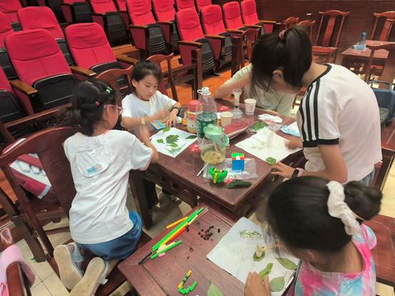 “传统文化传承日”以非遗技艺“植物拓染”为核心,孩子们在志愿者的指导下,亲手完成拓染作品,感受中国传统工艺之美。