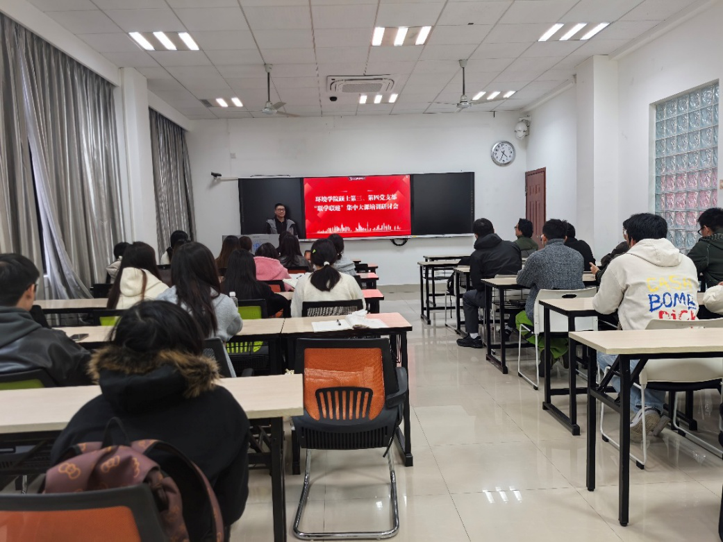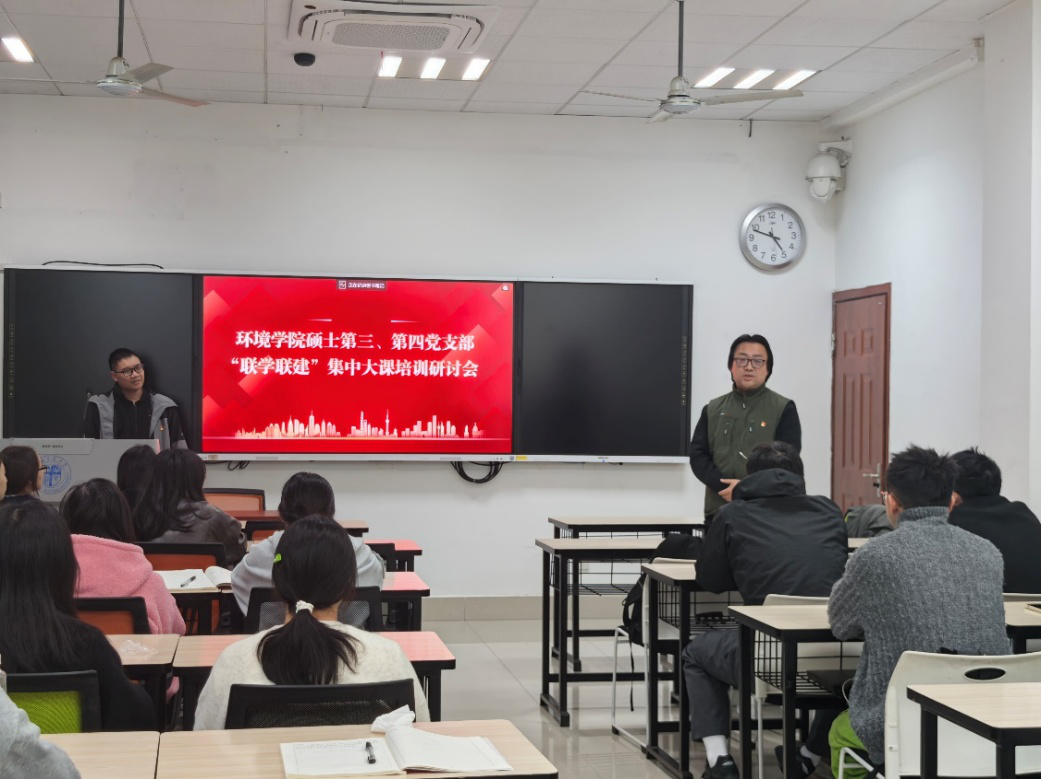 为深入学习贯彻习近平总书记关于教育的重要论述——以教育强国支撑引领中国式现代化,11月6日下午环境学院硕士第三、第四党支部联合在X4130教室联合开展了11月主题党日活动。会议由硕士第三党支部书记唐若愚主持,学院党委书记甘霖参与了本次会议。本次讨论会的两个支部各选出三、四名同学做感受类分享和实践结合分享。